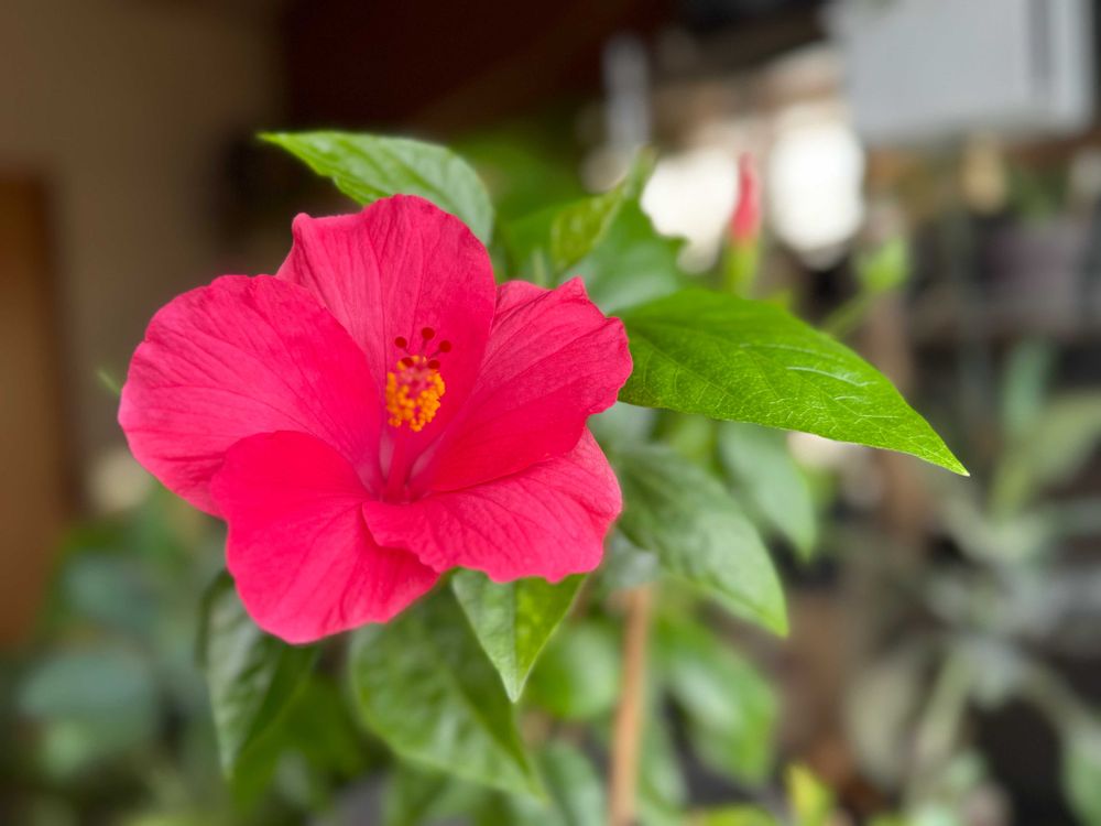 蕾が沢山付きだした "インドアハイビスカス サニーシティ" 今朝一輪咲きました🤗✨🌺✨