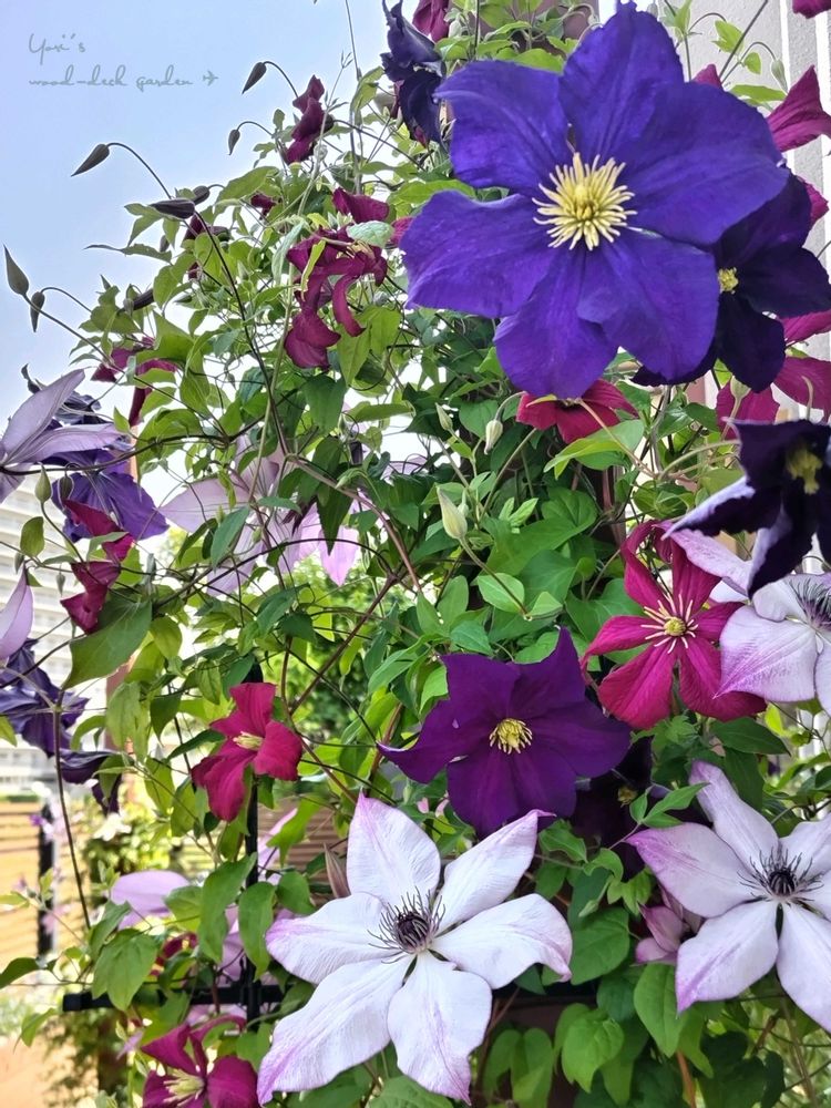 こんなに多数の種類のクレマチス、同時に開花、とってもキレイ😍