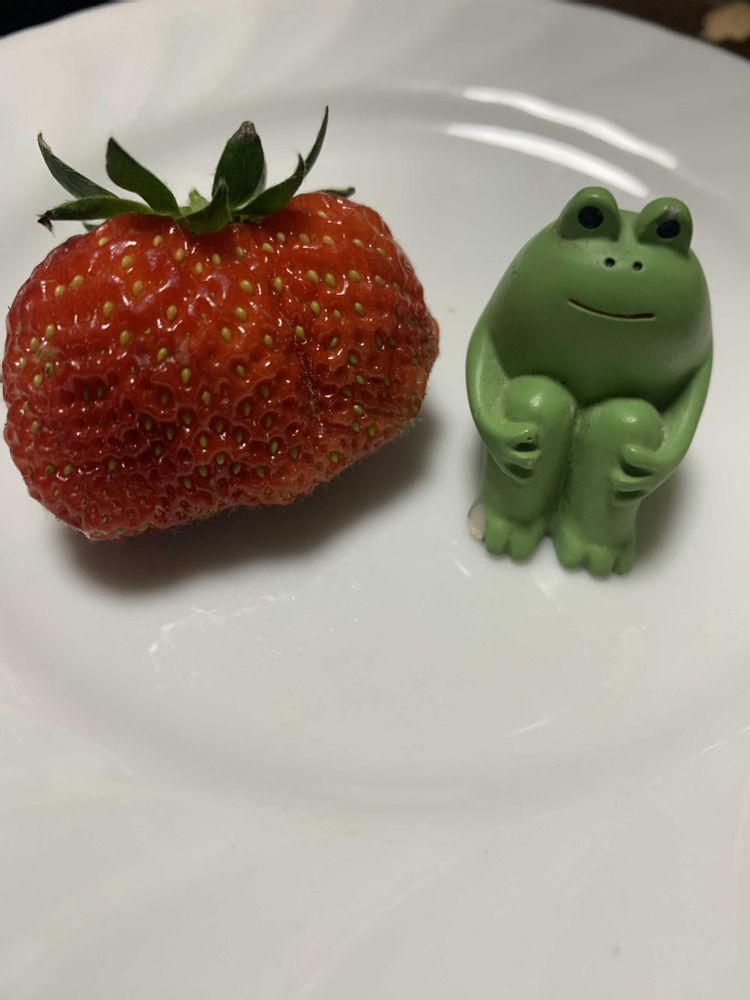 ②イチゴが大きく実りました(かえるちゃん4㎝弱)
