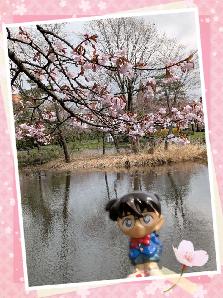 桜と池とコナンくん、気持ちよさそ✨️✨️