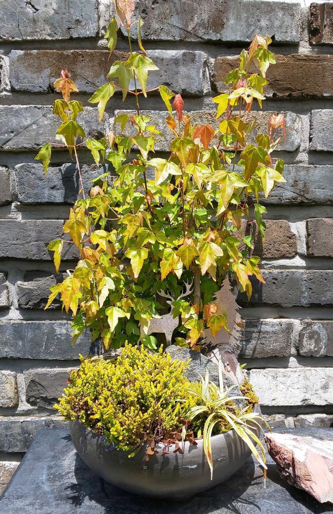 ②盆栽とは違う洋風の渋い寄せ植え。