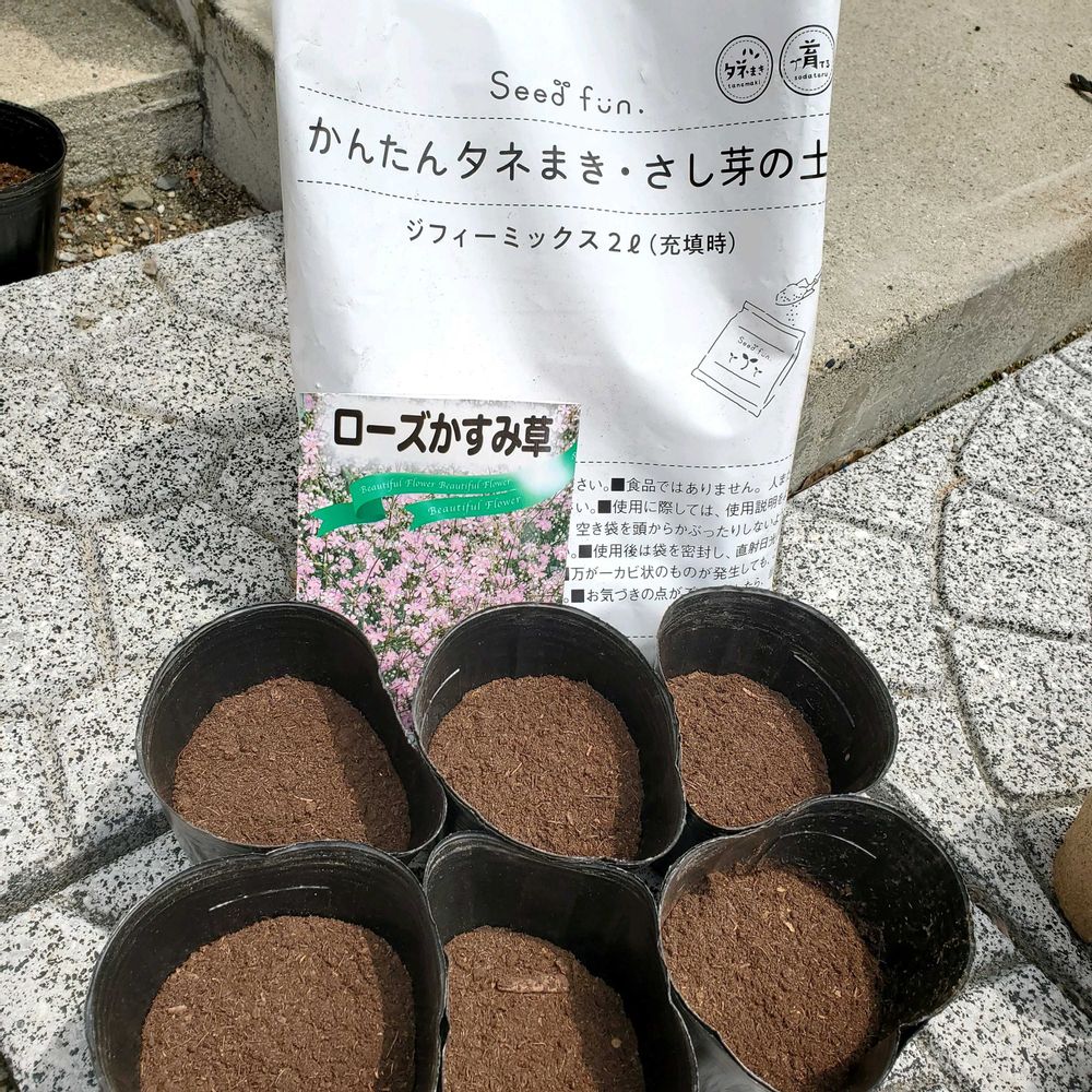 ジフィーミックス(かんたんタネまき、さし芽土) & ジフィーポットを使って、ローズかすみ草の種もまいてみました。