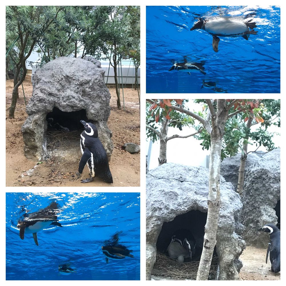 ①神戸須磨シーワールドのマゼランペンギン🐧♡巣の横の石と樹木🌳ひとつはオリーブかな?