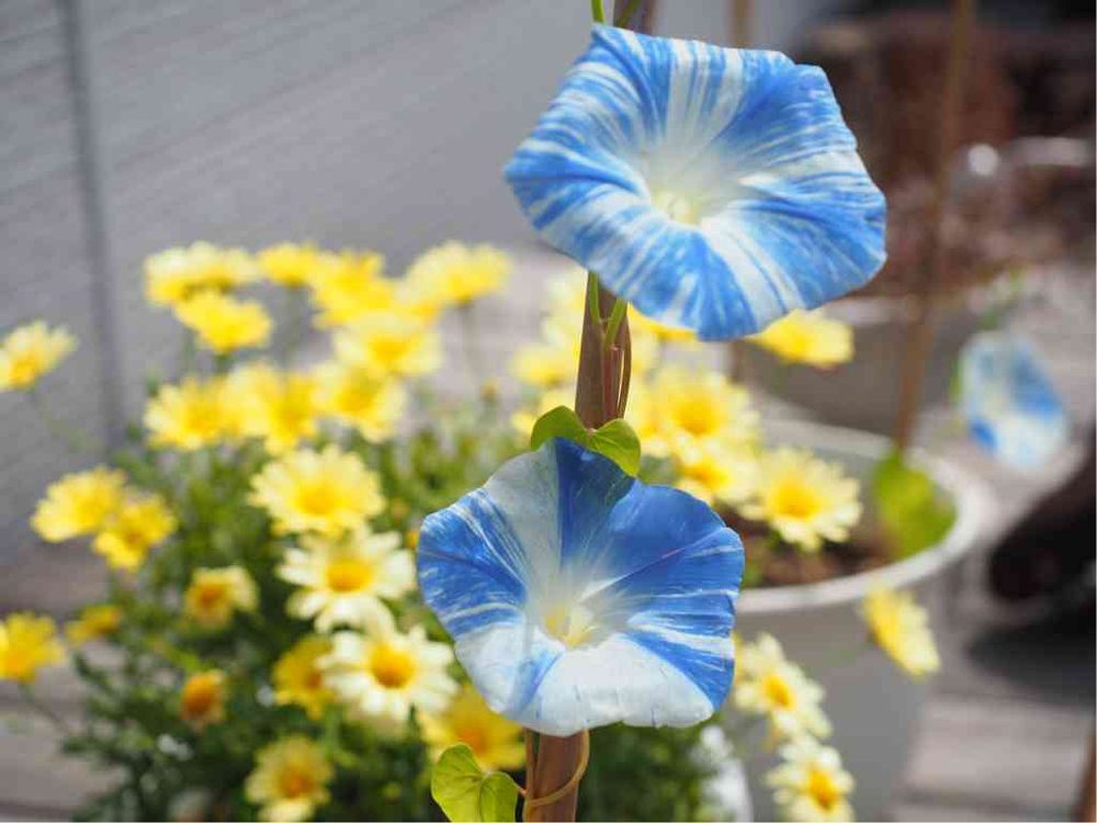 後ろのお花🌼(マーガレット?かな)がお互いを引き立てあってますよね✨