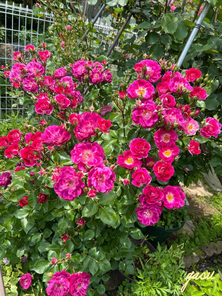 ④⑤Fバレッタは今年もかなり旺盛です🎶 渋めの赤紫で八重咲きの美しいバラですが、西の端っこで目立たなくて申し訳ない気持ち😢