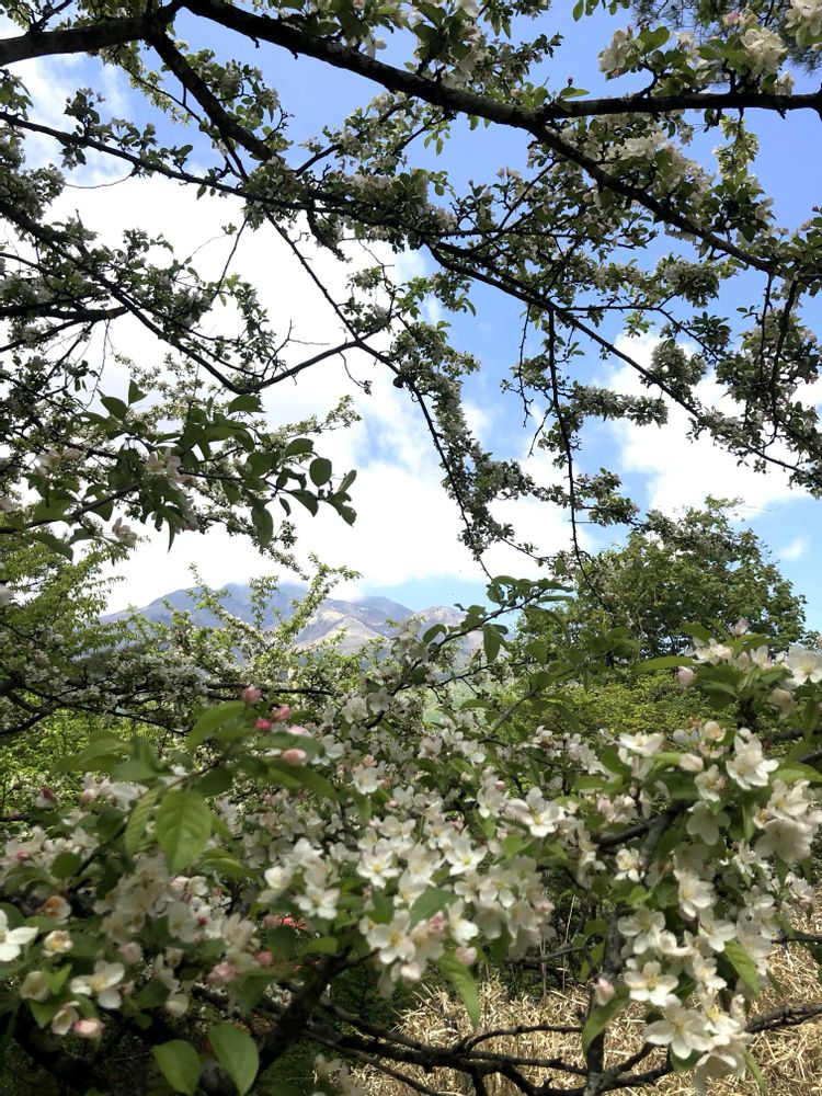 ズミの花が青空に映えて美しいですね✨