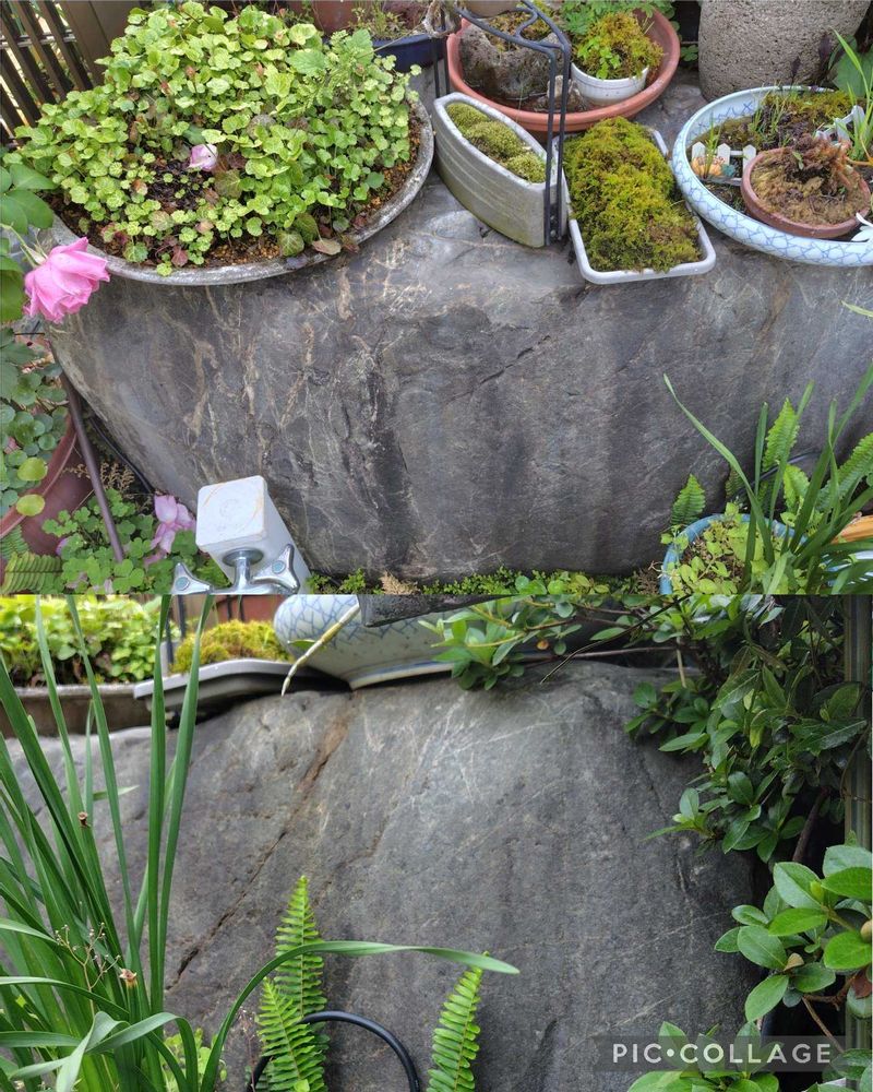 この石の後ろは 築山になっていて いろんな植物 植わってます ぶどうは この石の後ろに鉢植えに なってます 巨峰が枯れて しまったので デラウェアを 引っ越しさせました😊サクラウツギは 裏の通路に咲いているので 昨日発見したのです 葉っぱに隠れて 分からなかったので見過ごすところでした😂