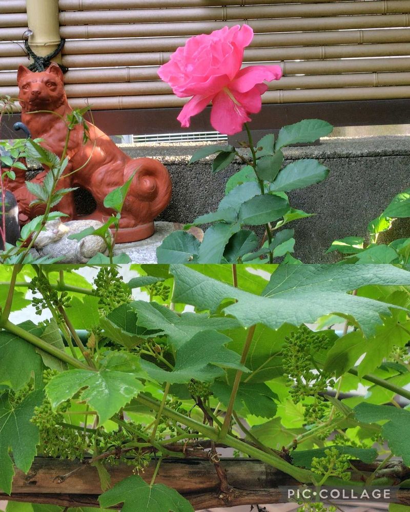 ③バラが昨日より開いていたので、ぶどう 今年もたくさん 実がつきそうです