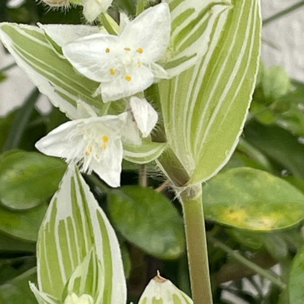 トラディスカンチアの斑入り葉で白花は爽やかですね〜🤍