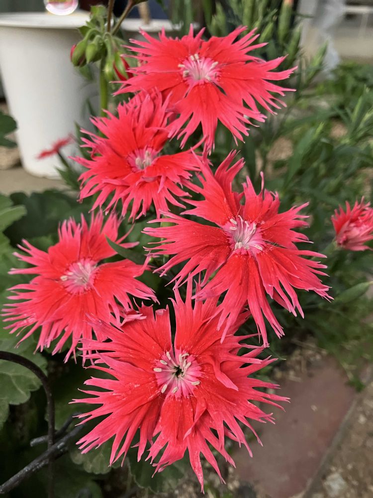 猛暑でほぼ全滅して、ガーデニングから少し遠のいていました。その中で挿し芽から復活してくれた大輪なでしこ♡