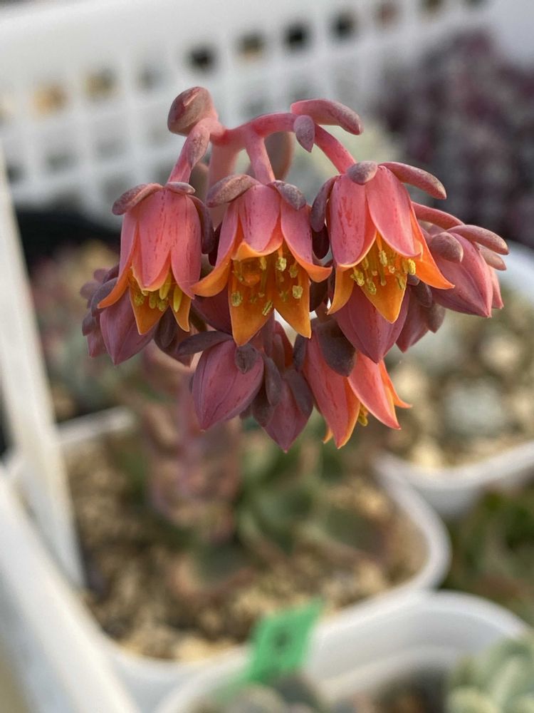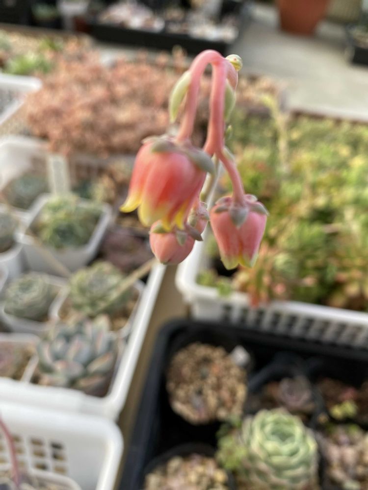 ベル型🔔のお花が可愛い多肉(エケベリア)のお花が花盛りですが、交配はする時間も技術もないので、カット✂️しました😊