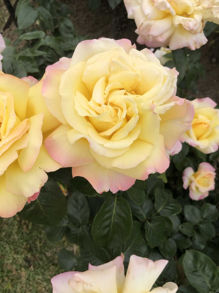 薄い黄色と薄いピンク色が入った白い花びらが美しいフランス🇫🇷製のバラ「ピース✌️」をパチリ!📸🌼🌿🤗