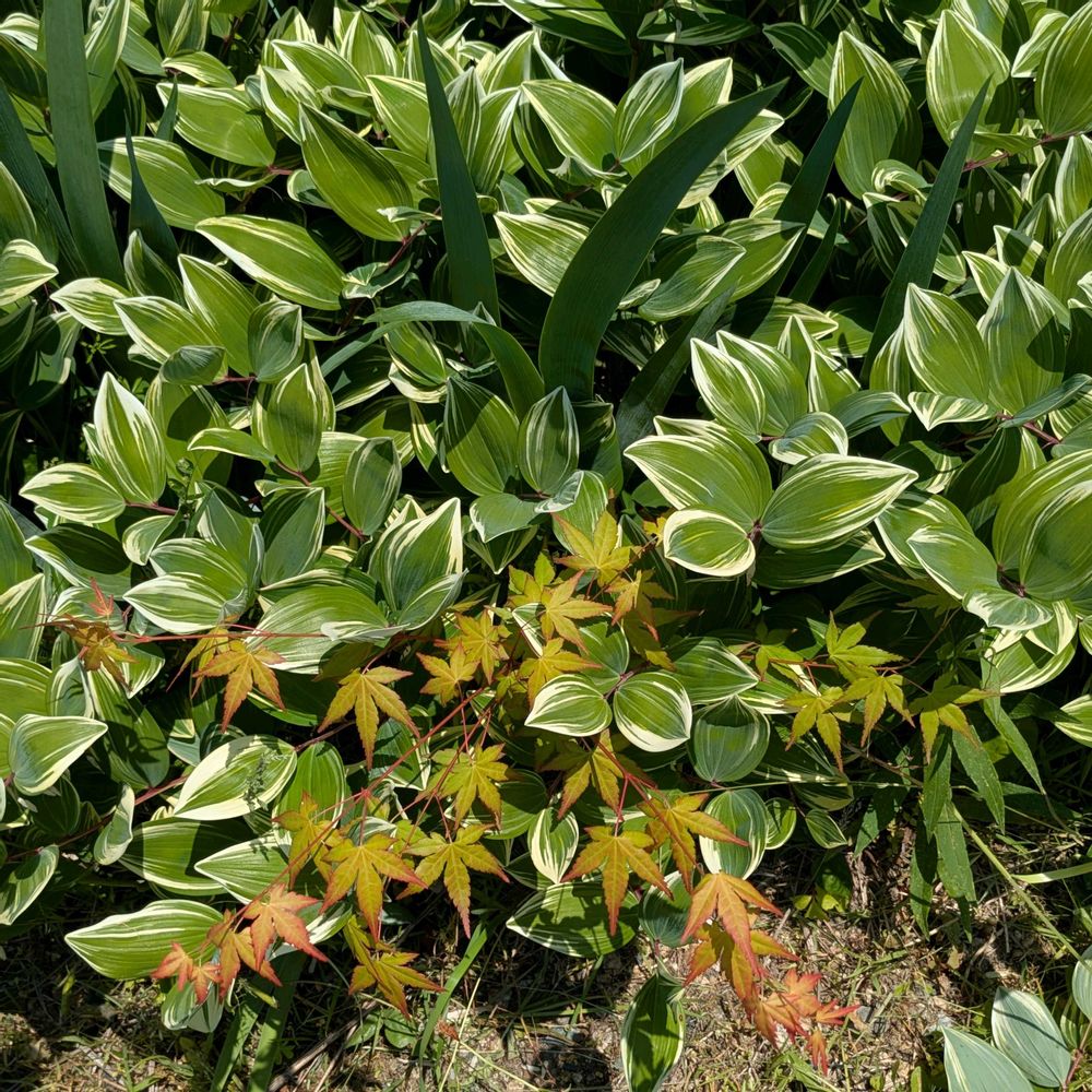 鳴子百合 ? の中にモミジが生えて来ました 去年は見なかった様な……