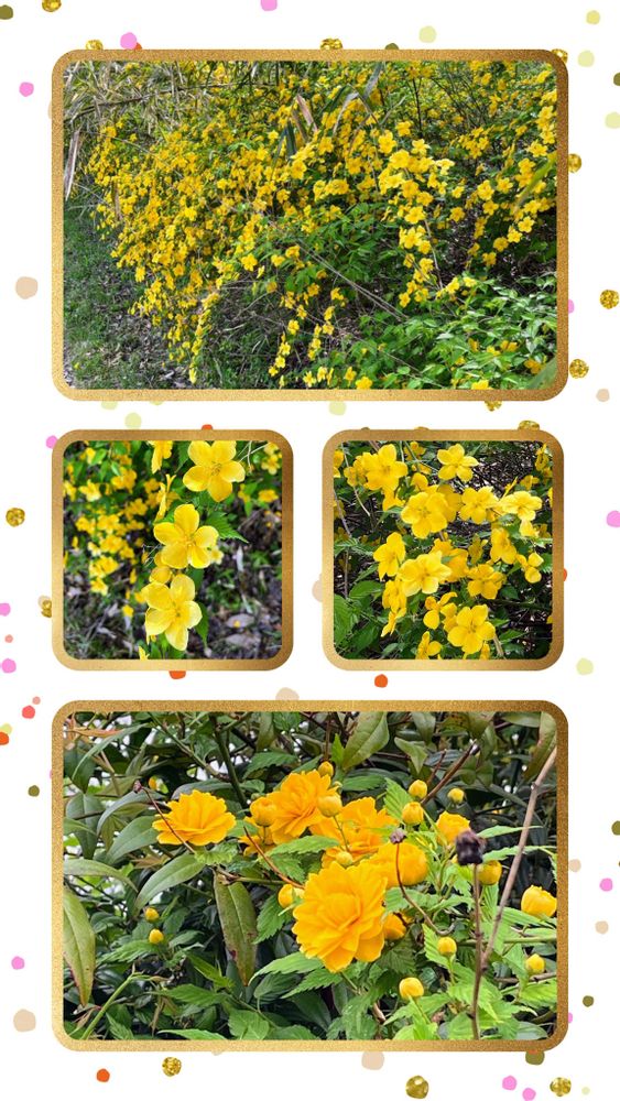 1️⃣ ヤマブキ(✨今日のお花✨) コラージュ写真です😊👍🏵️ コラージュ写真の1番下は八重咲きです🏵️ 八重咲きも綺麗です🤩😍🏵️🌼