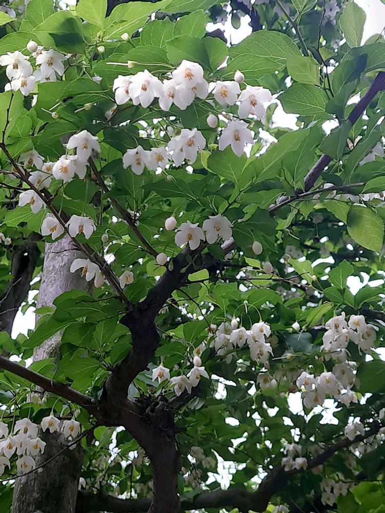 マンションの「エゴノキ」に白いお花が咲いています🌿🤍