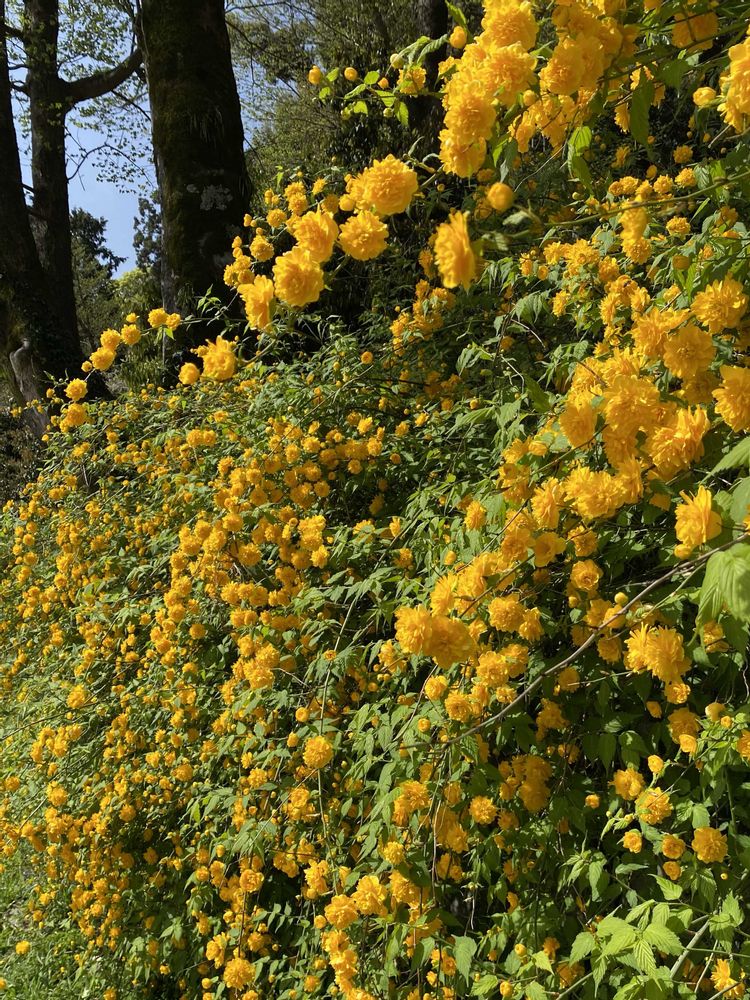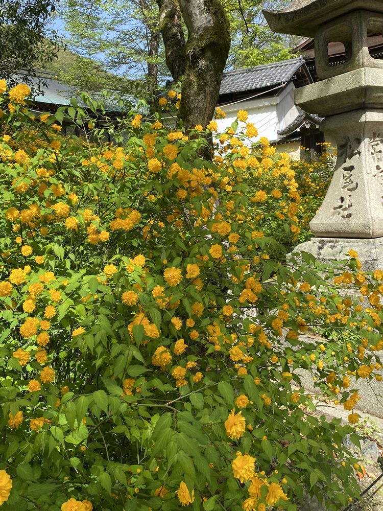 「七重八重花は咲けども山吹の実のひとつだになきぞ悲しき」作者、兼明親王。今日のお花は古典落語の「道灌」にも登場する山吹です。4月下旬、山吹の花で有名な京都嵐山の松尾大社でのpicです。👍👍
