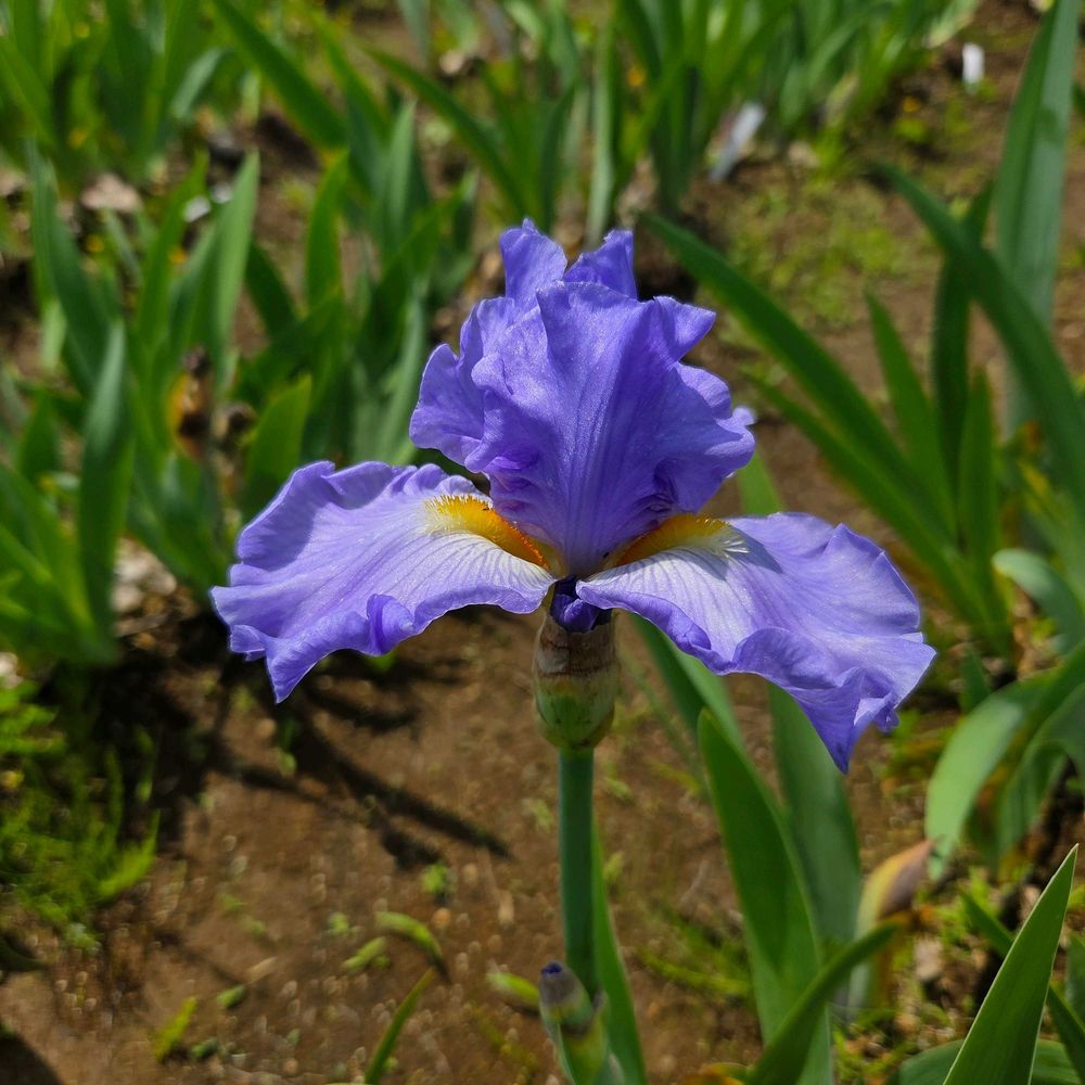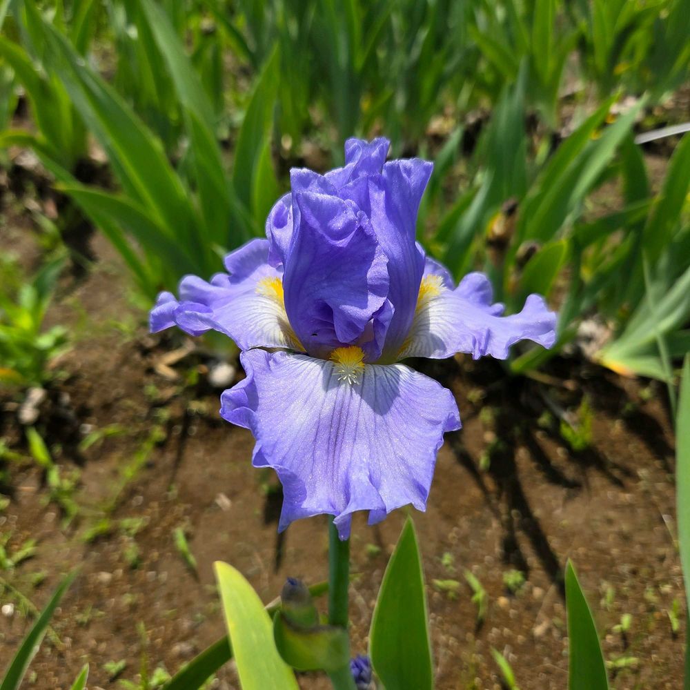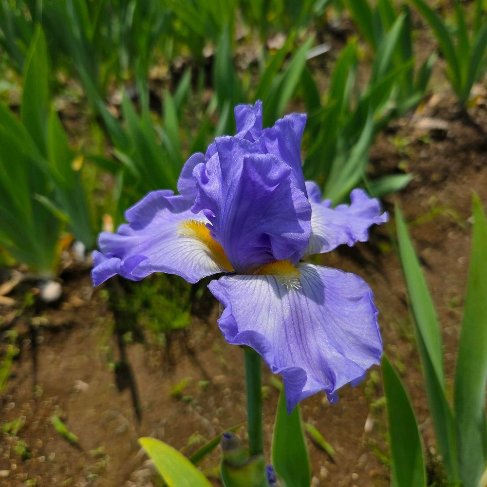 青空のような色の花弁と太陽のような色のヒゲが特徴的な品種ですね!今年は花色が濃いめなので若干スカイ感が薄いかもしれません😅