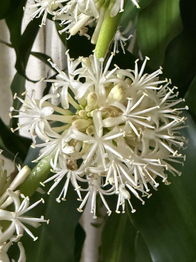 幸福の木に花が咲くのですね〜 凄いです40年待たないといけないのですね うちのはこの冬枯れてしまいました💦