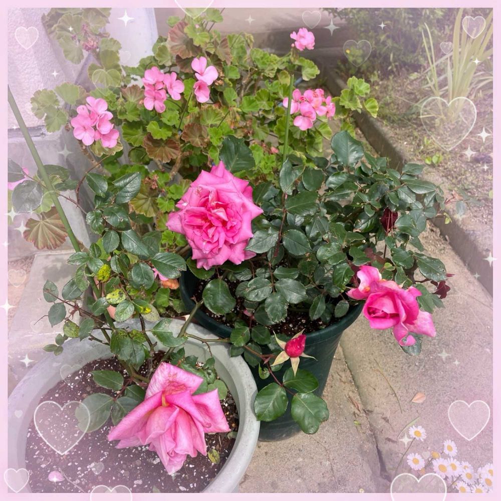 従姉妹宅も家を解体して〜庭のお花もたくさん頂いたのですが〜挿し木した薔薇は特に嬉しかったですよ〜♬なかなか挿し木出来ません💦