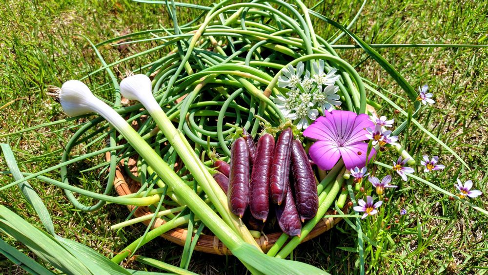 ニンニク&ニンニクの芽お庭のお花添え🧺