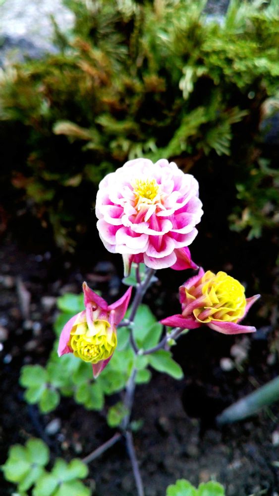 どこからか我が家の庭にきて咲いてくれたオダマキです