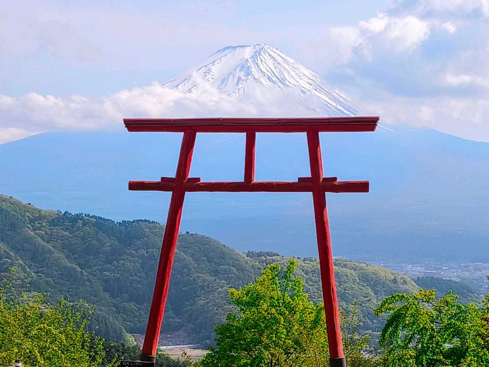 富士山をご神体として遥拝(「ようはい」とは遠く離れた場所から拝むこと)し、朱塗りの鳥居⛩️の向こうに雄大な富士山🗻がド~ン❗とそびえ立ちその霊峰さが更に増す感じがしてとてもいい景色に感じました🤩