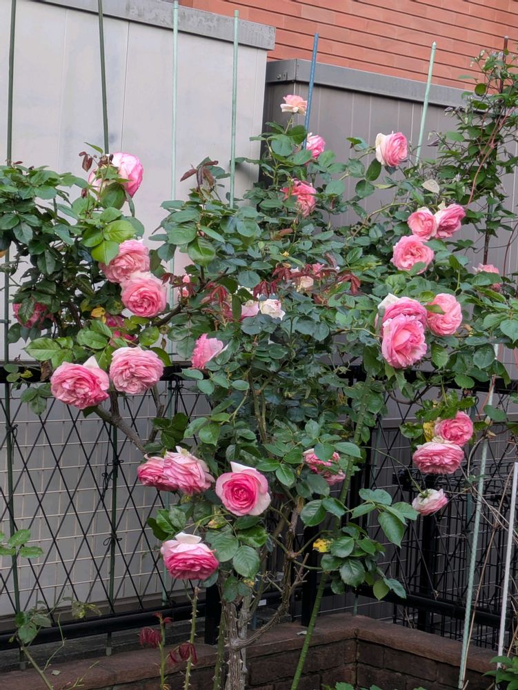 ピエールは、我が家にしてはちゃんと咲いたんだけど、ミンちゃんが写した壁に這わせたピエールを見て、戦意喪失。花がびっしり咲いていました。💓🤍💓🤍💓
