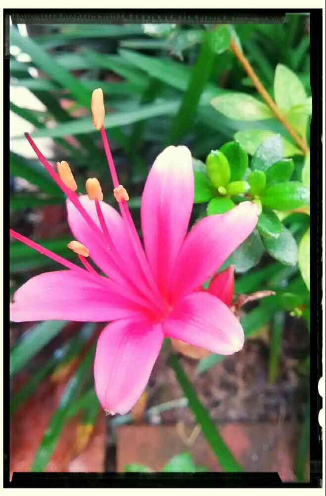 本当は彼岸花のような咲きかたをする、リコリスですが、一つだけ咲きました‼