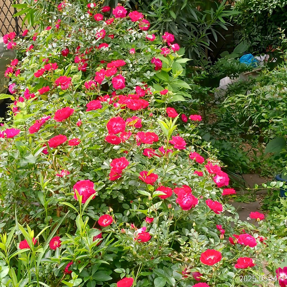 つる薔薇を去年から横に伸ばして蕾を沢山増やす様にしてみました😎