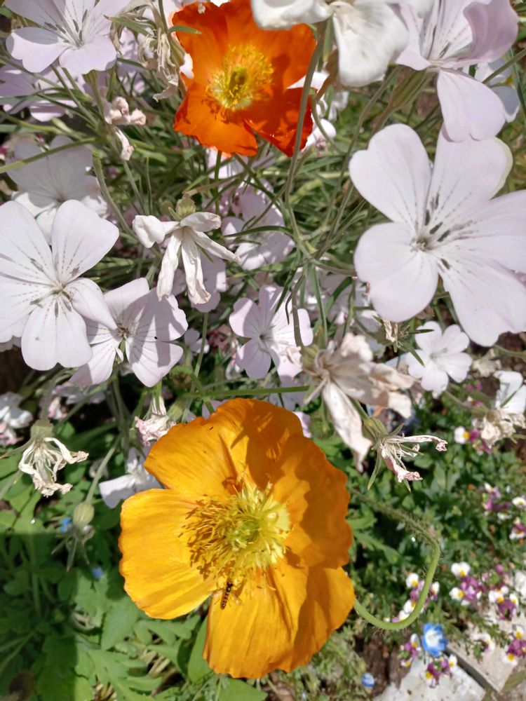 可愛らしいポピーが2輪咲いてます。💖💖💛💚🧡🧡