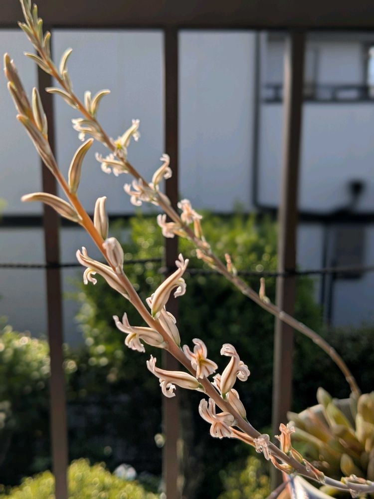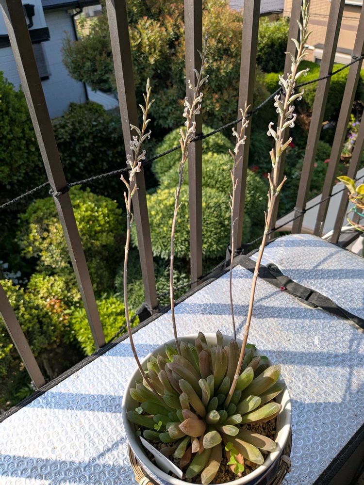 二階テラスのハオルチアに花が4本!!👏🥰🎶⤴️