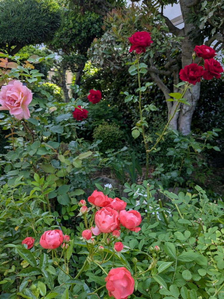 小さな薔薇園では〜四季咲き大輪薔薇🌹、ミニバラが素敵に可愛く咲き乱れています!!