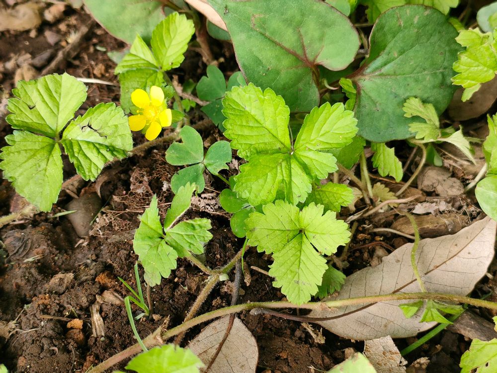 ヘビイチゴの葉、イチゴと一緒ですね。かわいい。