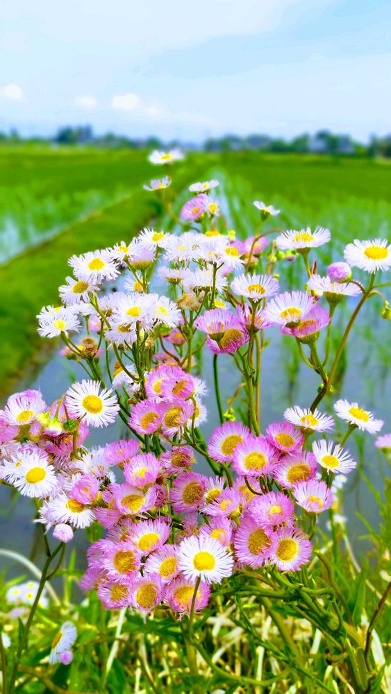 白とピンク、背景の水田見ていただきありがとうございます(=^・^=)🐈⬛🐾