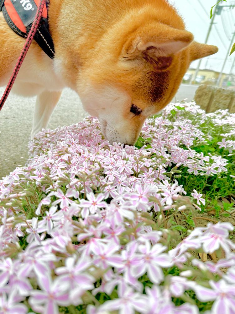 ラッキーと芝桜🌸優しさに溢れていて素敵ですね🦮