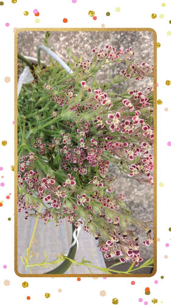 (5) シレネ ガリカ 四方八方に枝が伸びビニール紐でくくり、上からパチリスマホ📸