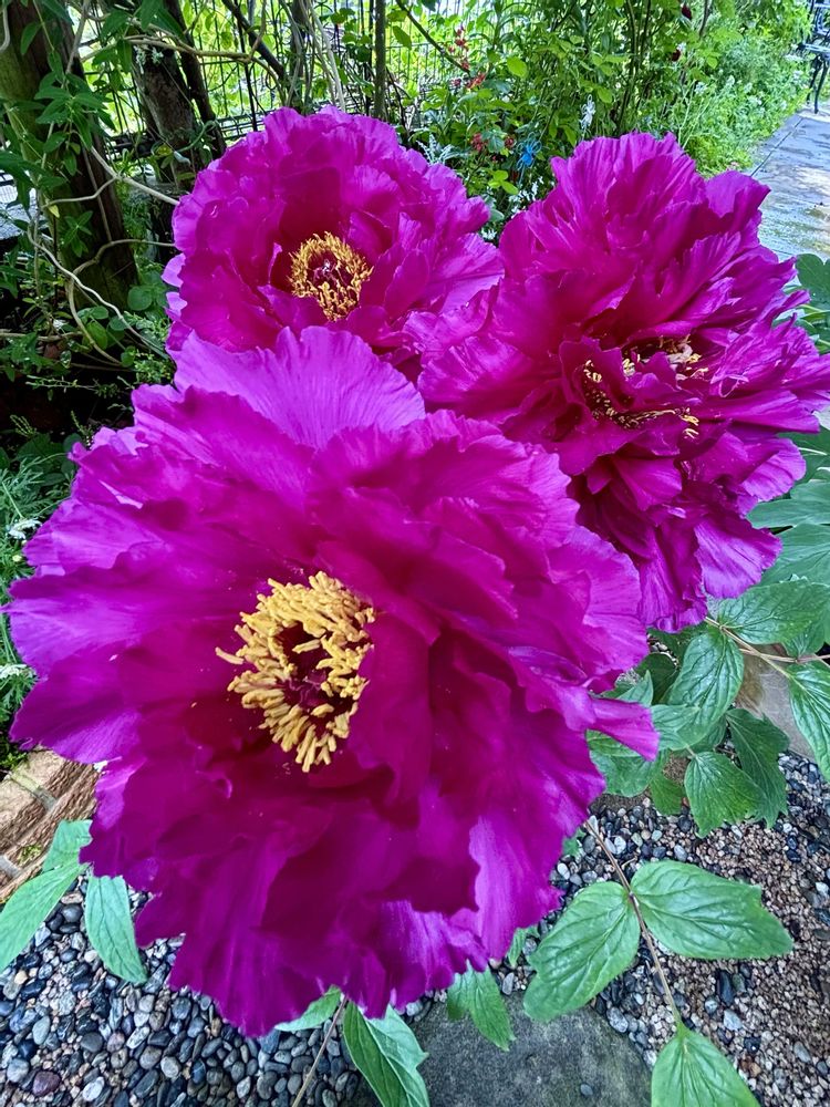 ①手前から🌹ダフネ、ピエールドゥロンサール、ルージュピエール、ケルナフローラ、カミーユの薔薇の波💕