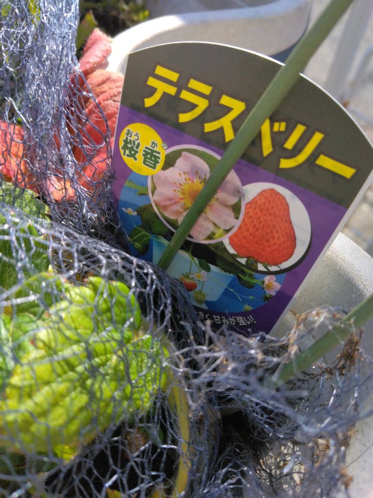 3月に出来た実🍓はネット隙間から鳥に狙われました🤣