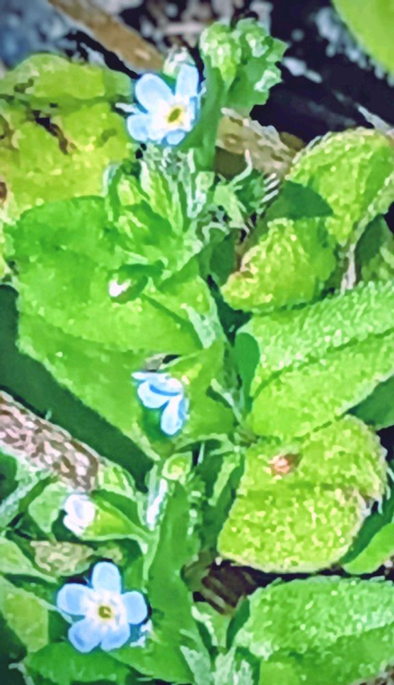 歩道と排水溝の隙間にキュウリグサが生えてます。