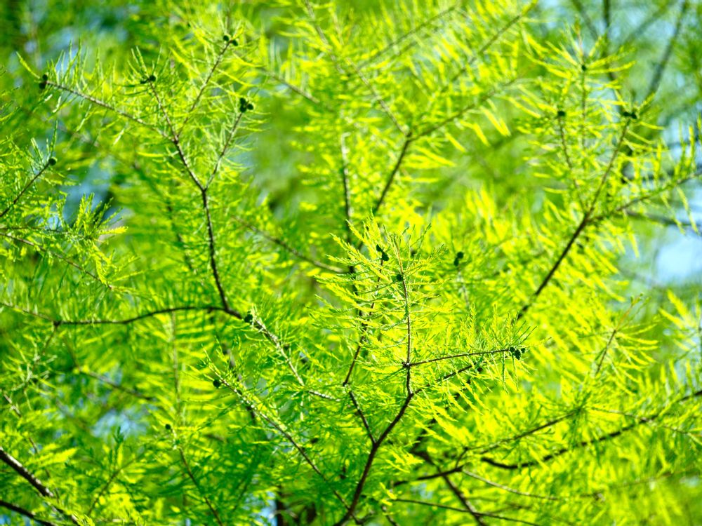 北アメリカを原産とする落葉性の針葉樹。日本には明治時代に渡来したとされ、公園などに植栽される。湿潤地に適応し、冠水するような湿地に植えると、幹の周りに呼吸のための気根が生じる。また、転倒を防ぐために、幹の根元には不規則に張り出す板根が生じる。(コピペ)