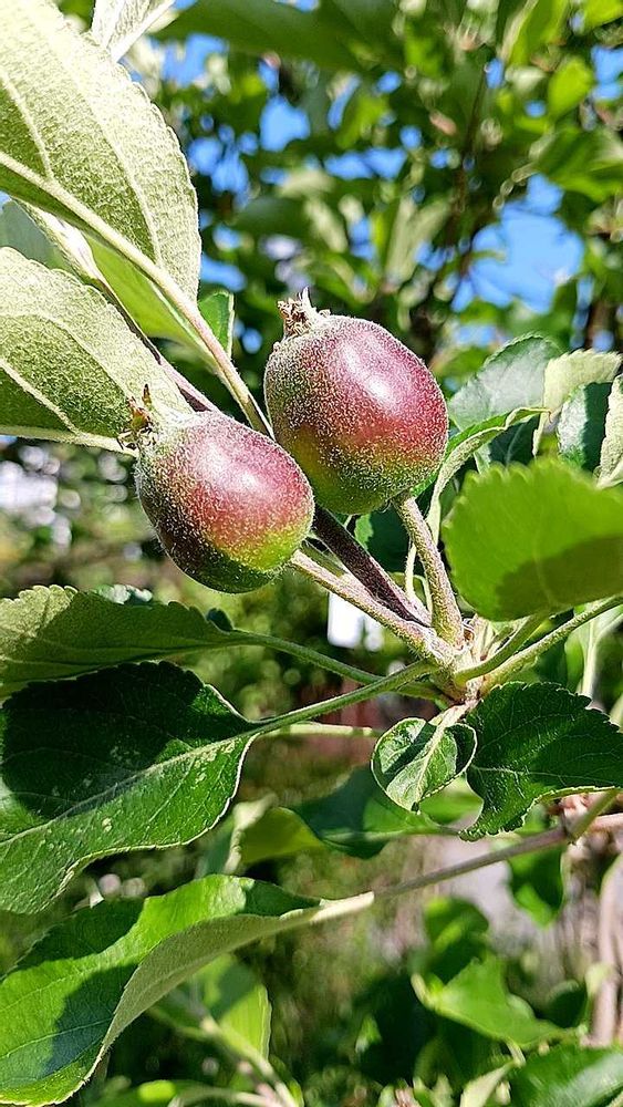 リンゴもバラ科ですから、よくよく見ると花も実も薔薇のそれによく似ているな、という私の感想でした。🍎
