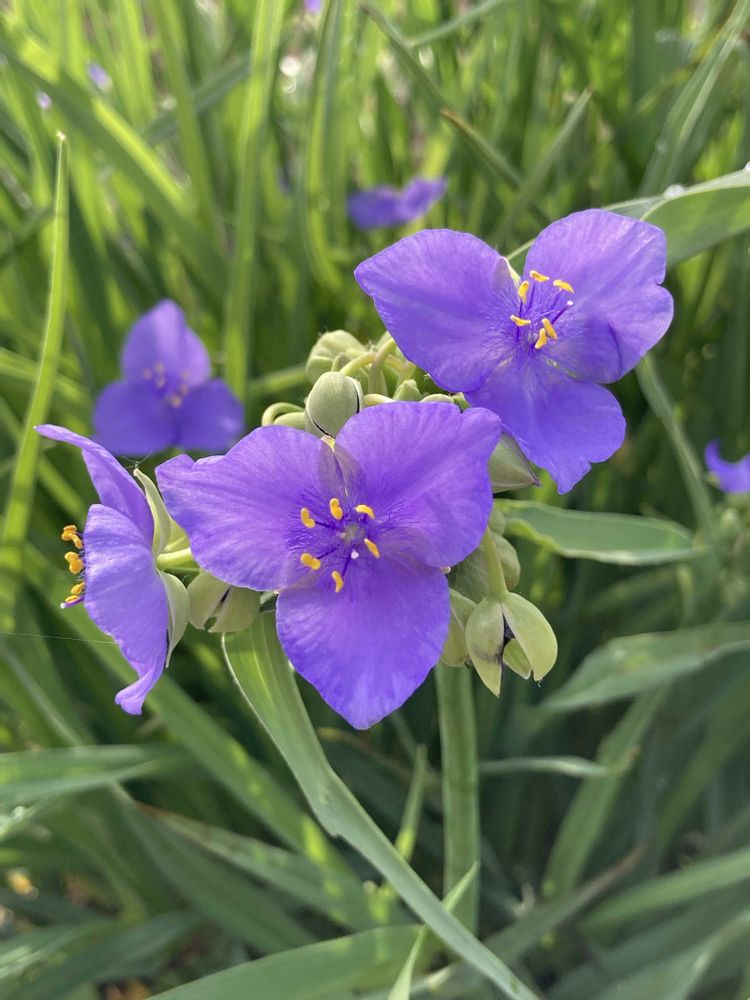 野に咲くツユクサまだ咲いていないが花壇のムラサキツユクサは咲き始めています 美しい紫🟣!