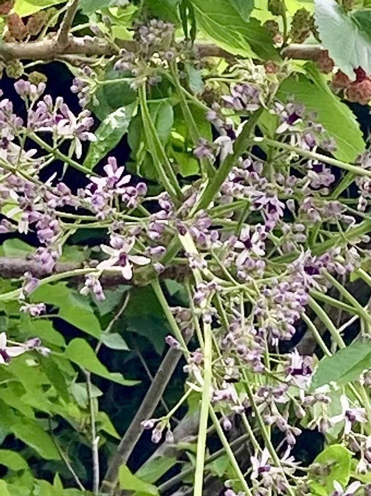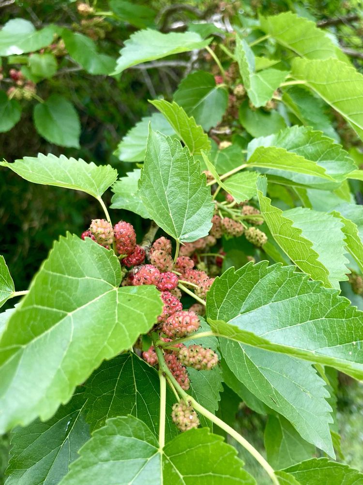 頭の上の方に若い実が(pic見るとちょっとぞわぞわ😅)いっぱい付いてる桑の木に気付きました🌲
