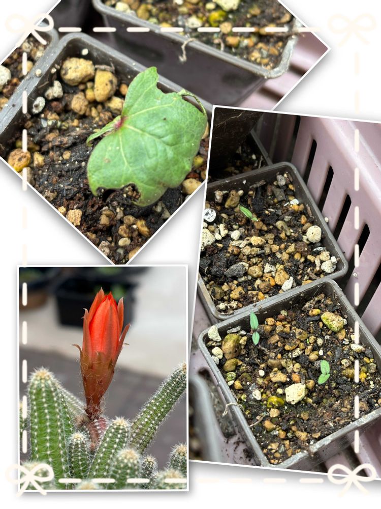 ⬆️和綿は5粒まいて、5粒とも発芽しましたが、先に発芽した子はみごとに🐌にやられてしまいました😭