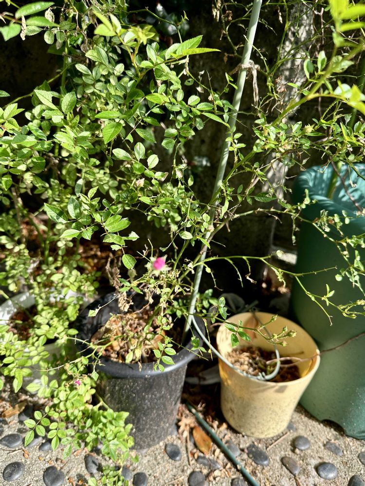 つるバラのカクテルさんベビー👶挿し木から3年目でやっと花咲かせてくれました。親株も蕾一杯着けてるけど、ベビーちゃんが先に咲き始め!この子は娘の所に嫁に行く予定でしたが、孫が出来たので棘のある植物はNG!家で育てて何代か先に孫にプレゼントします🎁