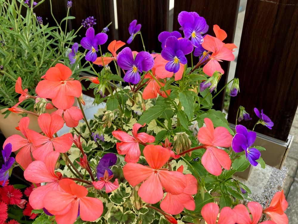 斑入り葉ゼラニウム…今年は元気で、零れ種のビオラに負けてません😄