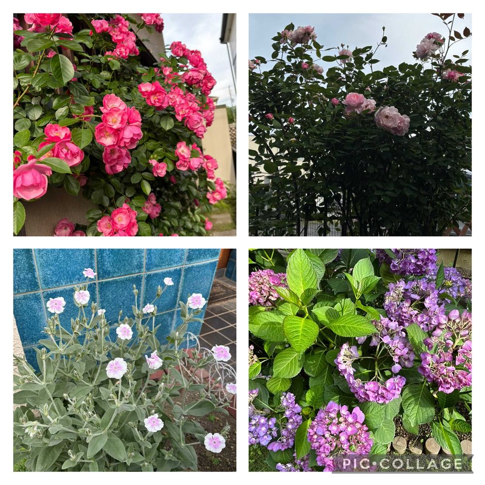 バラもよく咲いてアジサイも早いです🌹