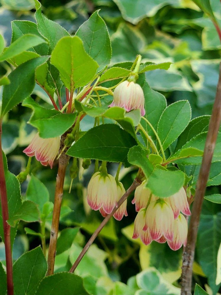 花はクリーム地にピンクの縁取りが入った可愛いベルのようです🔔