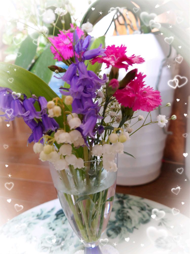 2️⃣我が家のスズラン咲き揃い💜シラーカンパニュラータとコップ挿し🥂𓈒𓏸◌
