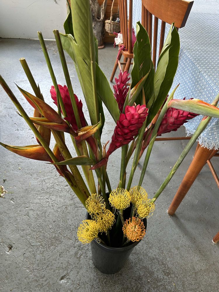 お花屋さんから残り物のトロピカルフラワーをいただきました。